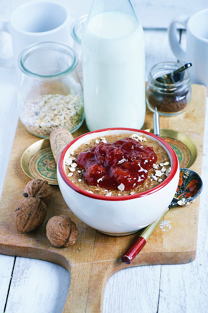 Owsianka kawowa z dżemem wiśniowym / 2 porcje